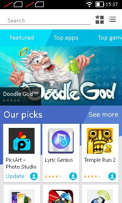 - Skinned version of Android 4.1.2 jelly bean ( Nokia’s 1.1.1.0 software version RM 1030).
