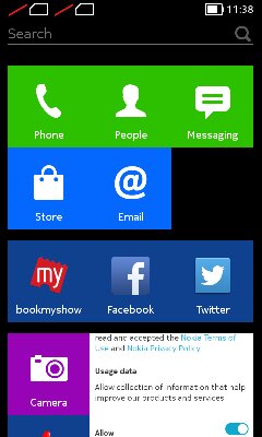 The CEO said they needed a platform between the Asha range and Windows phone smartphone. So in Software part of Android they folk it like Windows and Asha. The main home screen has tile like interface of windows phone these are static tiles, not live tiles as windows. You can change the colour of each tile as your wish and organize according to colour of tiles, Also you can increase the size of it. For the notification they imported the Fastlane which was introduced in Asha phones. FastLane is actually a time-line which shows the recent app you used, combining the notification of messengers and twitter in real time according to time. The android people has an habit of swiping down here in that case no notification are present, only 1/4th screen is taken by swipe down panel also which is for only quick settings toggle. If you talk about the bloatware, it runs android but with no google service pre-installed. It all comes with microsoft services pre-install like instead of google drive there is SkyDrive , intead of google maps there is here maps. It also comes with Nokia Mix Radio service not the music store but only mix radio service. There are some apps comes pre-install like Facebook, Twitter, BookMyShow, Plants Vs Zombies 2, Danger Dash, bejeweled 2 ,tetrix, green farm 3 , wonder zoo,monopoly classic, Astro file manager, opera, vine ,BBM , facebook messenger, WeChar, news hunt , Sony Liv, Clean-up. Nokia has its own Android Appstore not with much apps, It doesn’t have officially whatsapp or instagram, for that it suggests us to download 1mobile market which has all these apps. There was one more feature which they got from Windows phone was the glance screen, Nokia said people using smartphone spent most time in checking notification and most battery is spent on just checking the notification, so for that purpose the solution was the glance screen which shows time and notification from the apps right without unlocking the device in white font. The lockscreen was completely implemented from the Asha series all notifications comes on lock screen swipe right inorder to open that App.